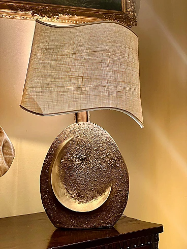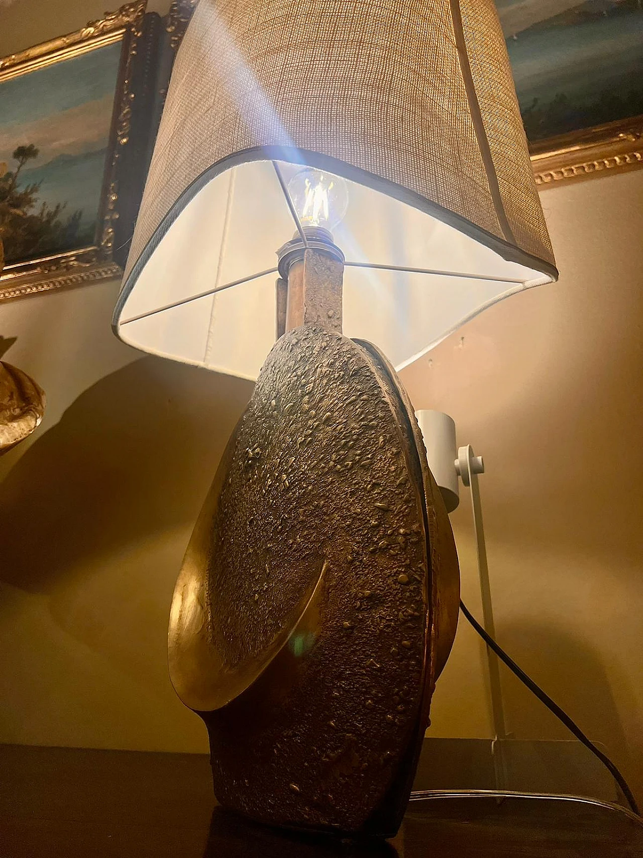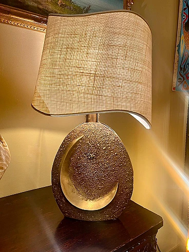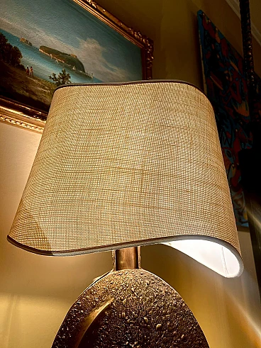 Lampada da tavolo in bronzo e paralume in tessuto di Pragos, anni '60