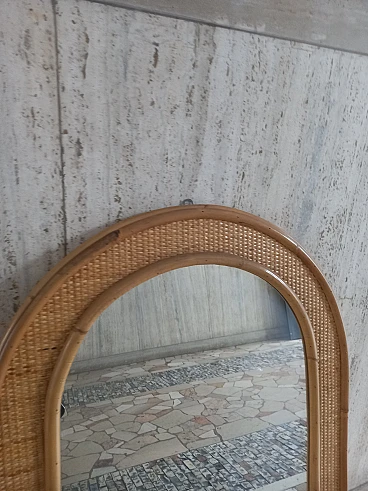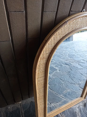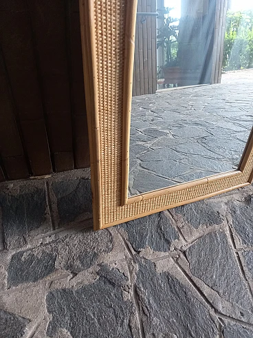 Specchio con cornice in legno e bambù di Dal Vera, anni '80