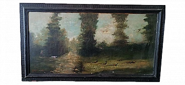 Locatelli, caccia ai fagiani, dipinto a olio su tela, '800