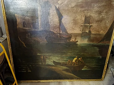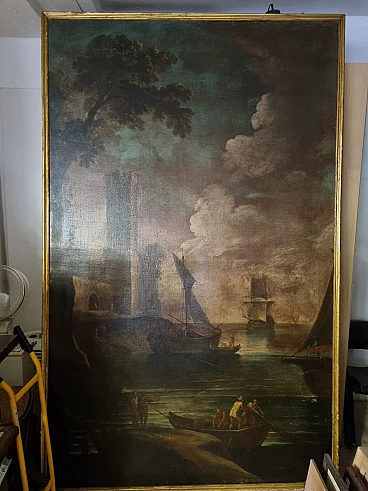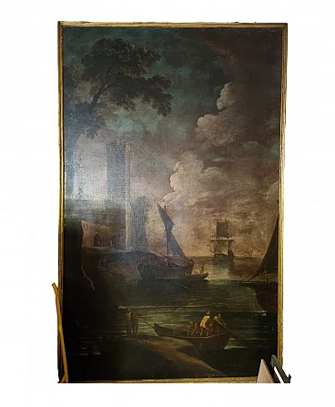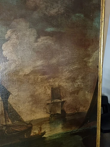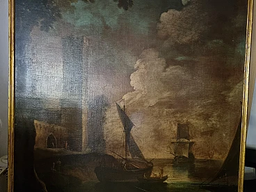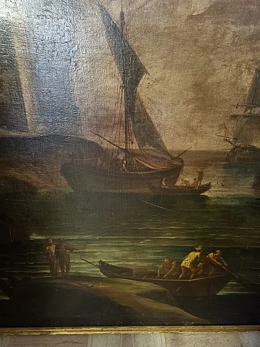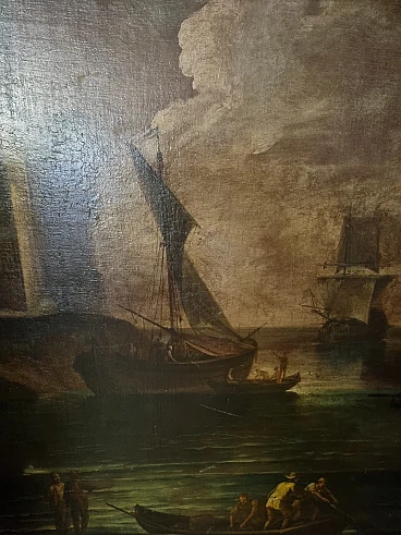 Paesaggio marino con velieri, olio su tela, seconda metà '800