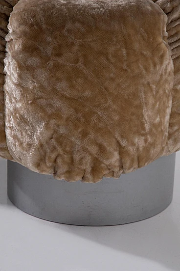 Questa coppia di pouf italiani degli anni '70 dalle forme eccentriche e ispirate ai fiori è un vero e proprio tesoro di design, perfetto per chi desidera aggiungere un tocco di originalità e stile al proprio ambiente. Rivestiti nel tessuto originale dell'epoca, un velluto lussuoso e invitante, questi pouf non sono semplici sedute, ma veri e propri pezzi d'arte che catturano l'attenzione e stimolano la conversazione. Il velluto con cui sono rivestiti emana un senso di calore e bellezza senza pari, offrendo un comfort accogliente che invita a sedersi e rilassarsi in un abbraccio morbido e confortante. La base di ogni pouf è realizzata in legno robusto, verniciato in un elegante grigio che contrasta splendidamente con il vivace tessuto di rivestimento, aggiungendo un ulteriore livello di raffinatezza.