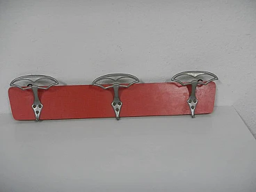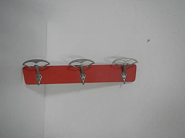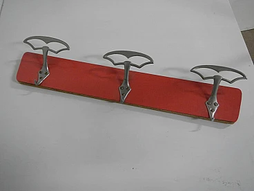Appendiabiti in formica rossa con 3 ganci in metallo, anni '70