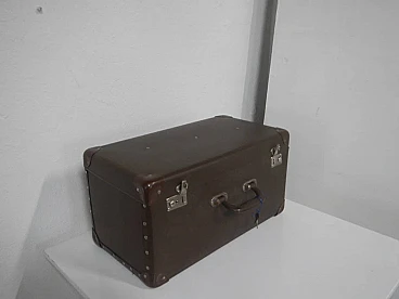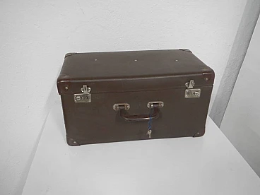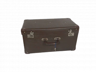 Valigia a forma di baule in cartone e finta pelle con chiavi, anni '80