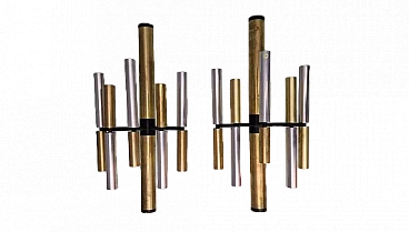 Coppia di applique in metallo cromato e ottone di Stilnovo, anni '60