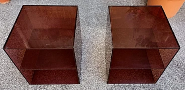 Coppia di Comodini in plastica arancioni con ripiano, anni '60