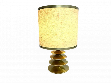 Lampada da tavolo in ottone con paralume cilindrico, anni '70