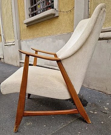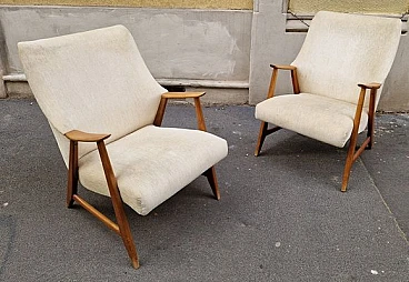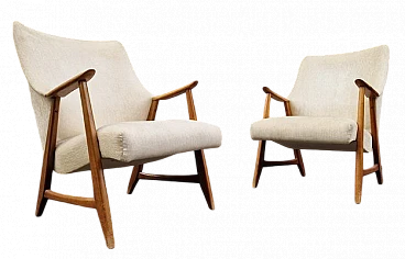 Coppia di Poltrone svedesi in tessuto beige e legno, anni '50