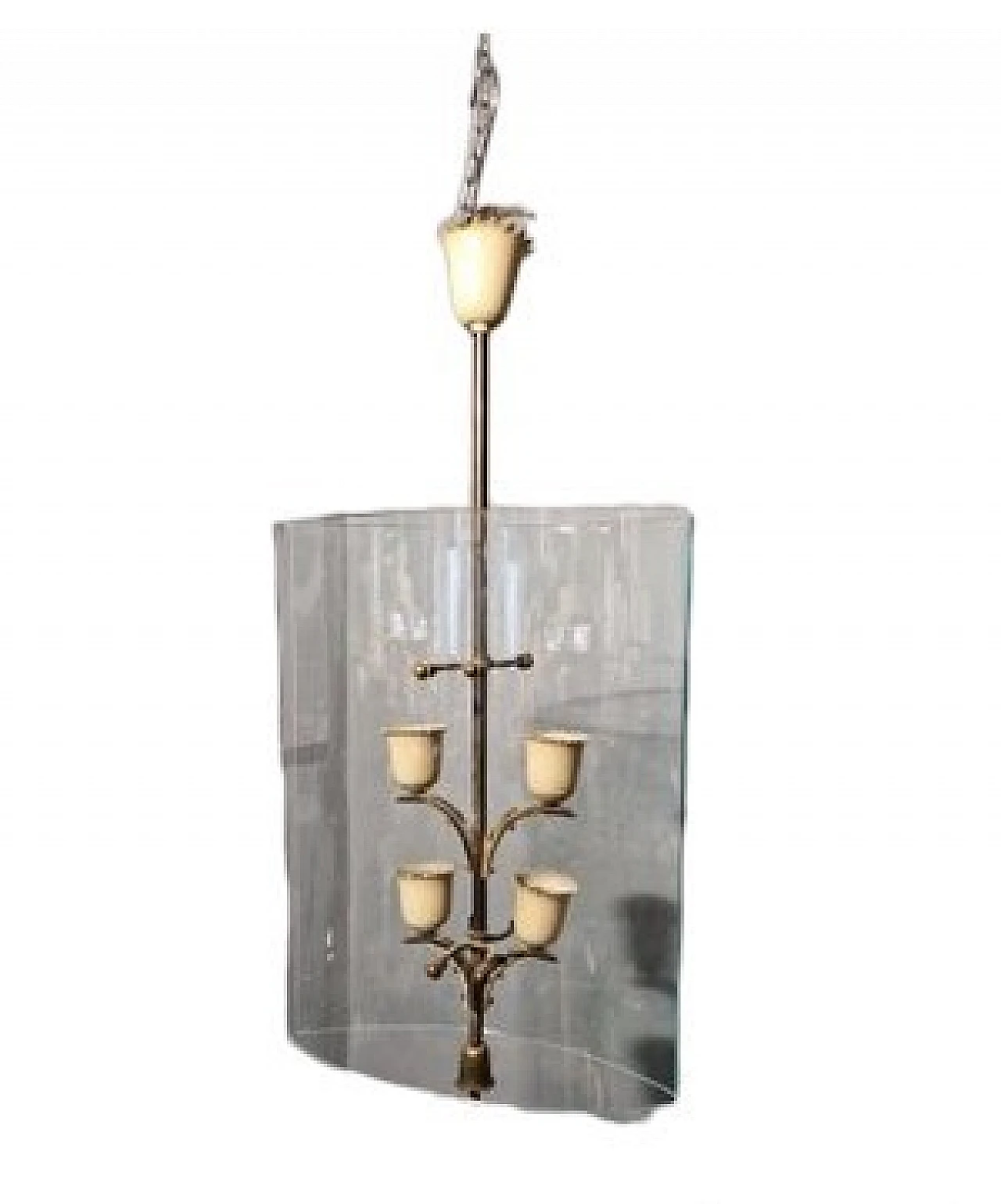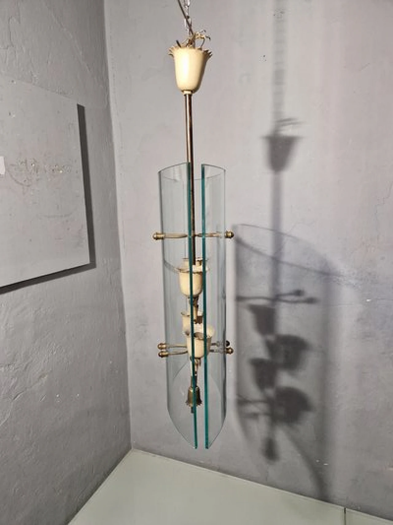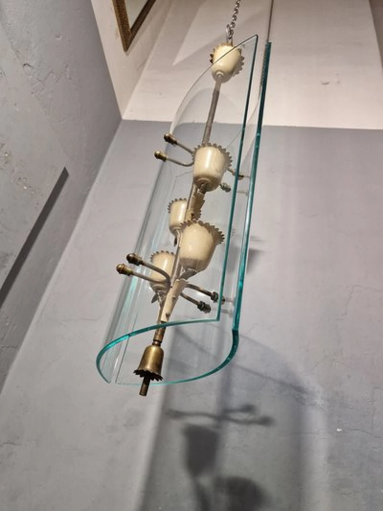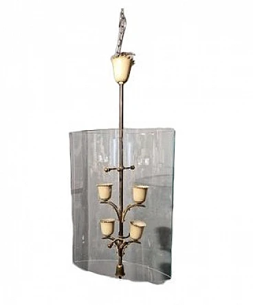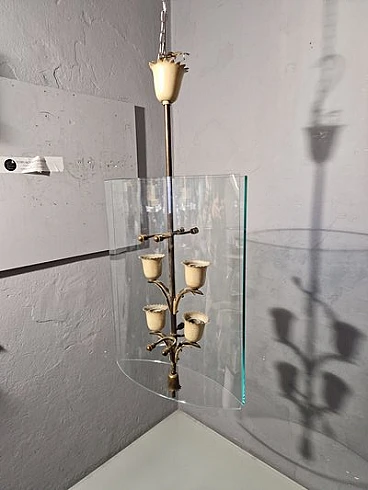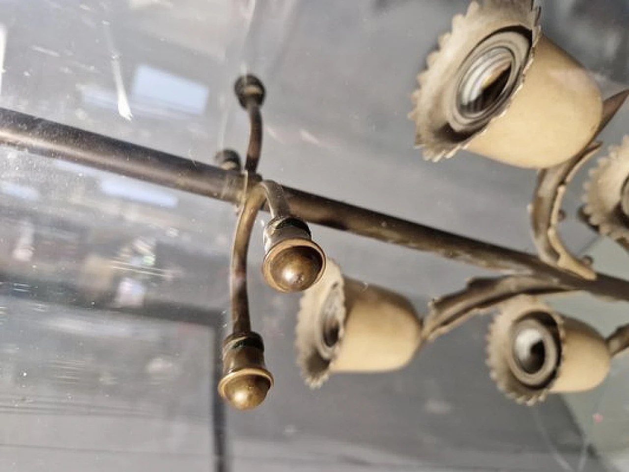 Lampadario in ferro e ottone di P. Chiesa per Fontana Arte, anni '40