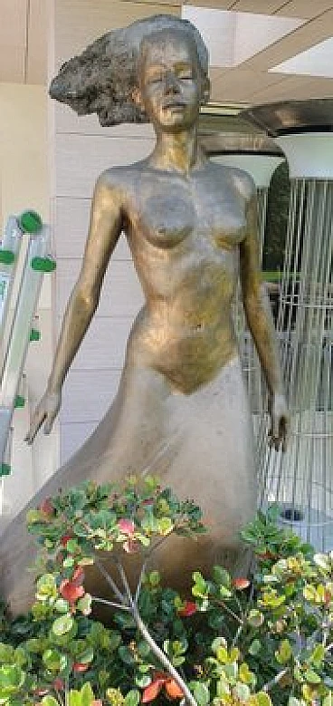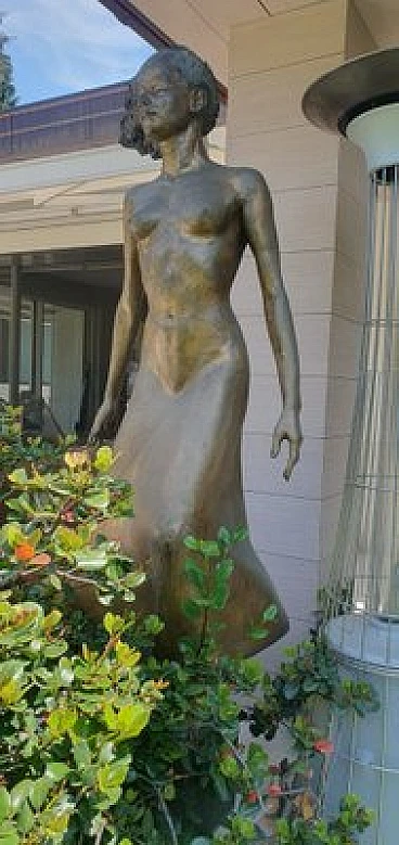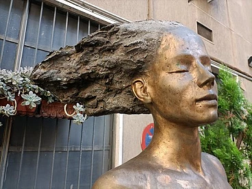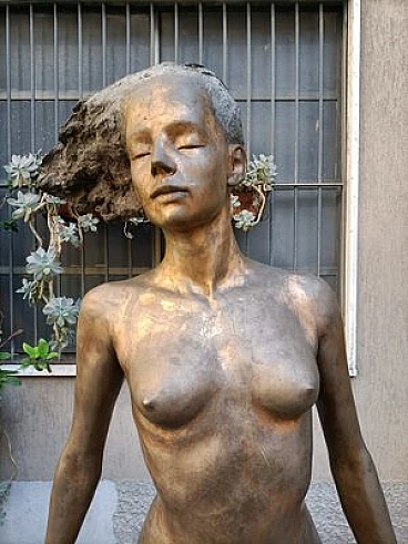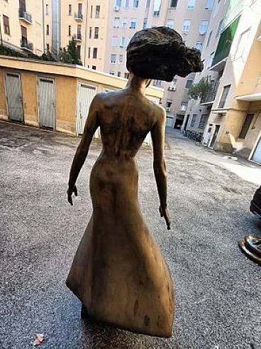 M. Ventura, Donna con i capelli al vento, scultura in bronzo, anni '80