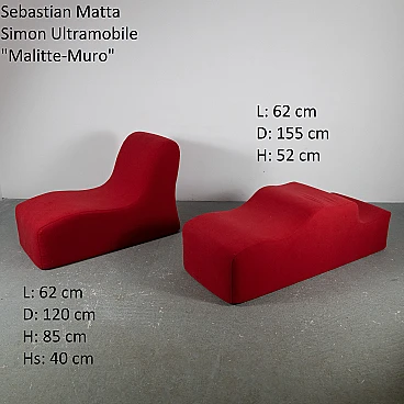 Poltrona e panca Malitte di R. S. Matta per Gavina, anni '60