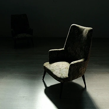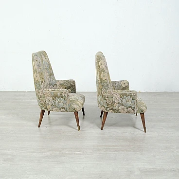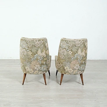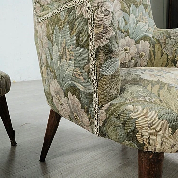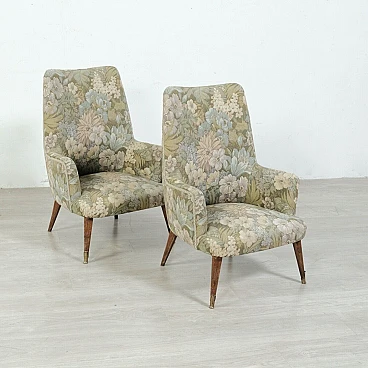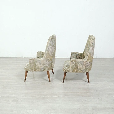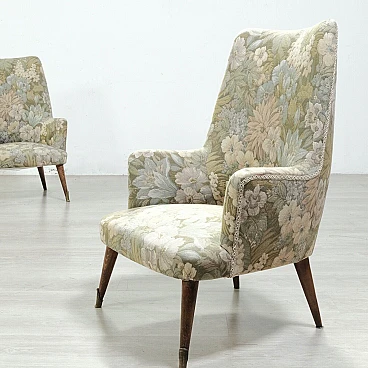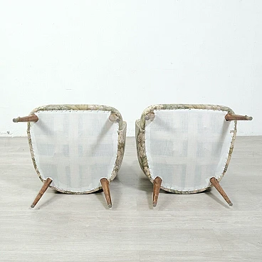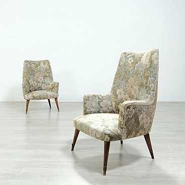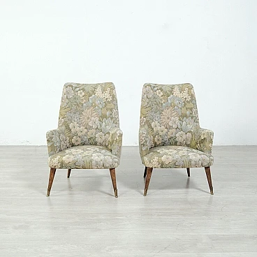 Coppia di poltrone in legno e tessuto floreale, anni '50
