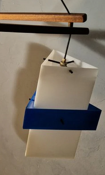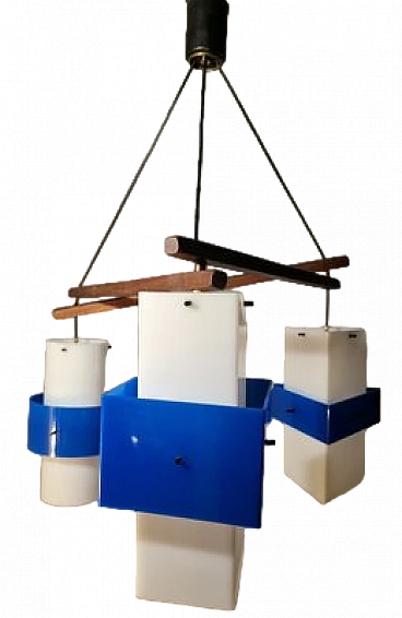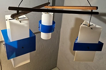 Lampadario in vetro acrilico bianco e blu di Stilux, anni '60