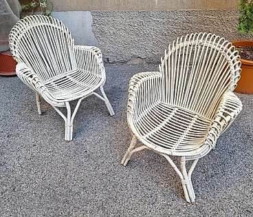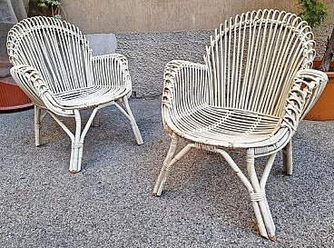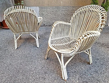 Coppia di Poltrone bianche laccate in bambù, anni '50