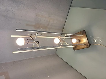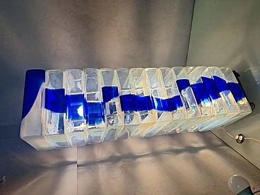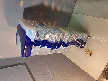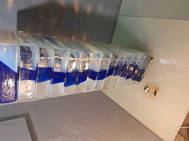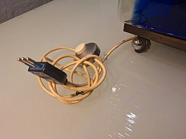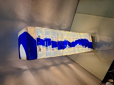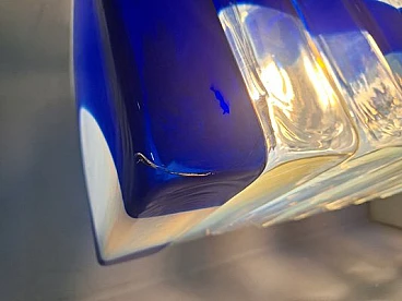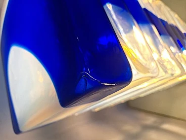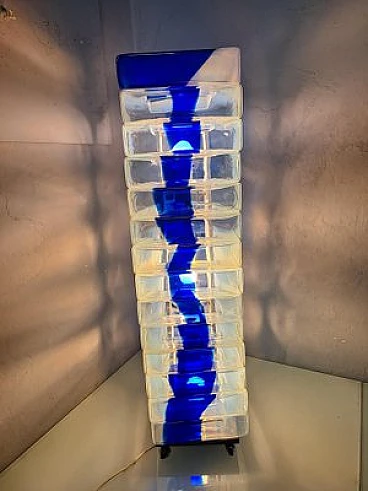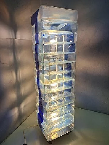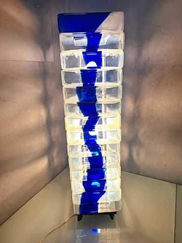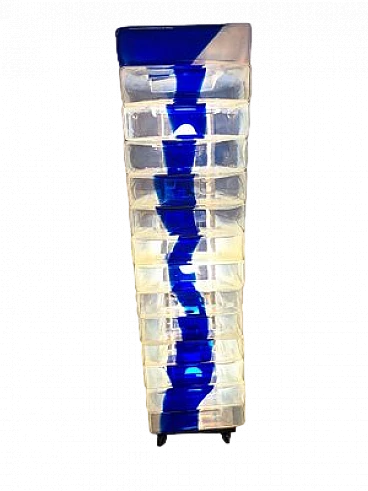 Lampada da terra con struttura in ferro e ottone, ricoperta da vetro trasparente e blu. Modello LT230. Designer Carlo Nason. Produttore Mazzega, anni '60.