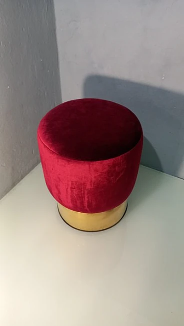 Pouf in ottone e velluto rosso, anni 2000