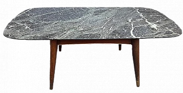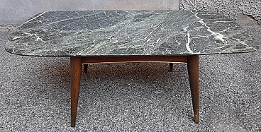Tavolino in legno con piano in marmo verde Alpi, anni '50