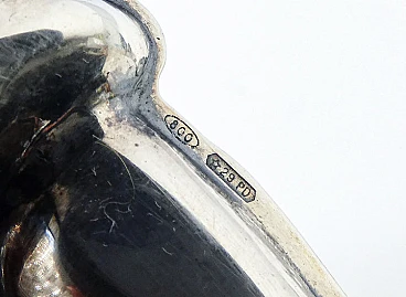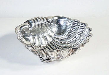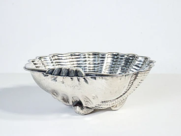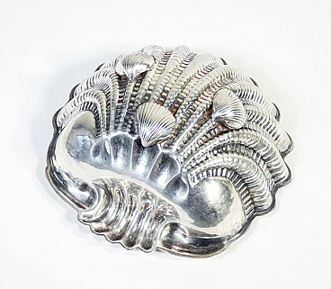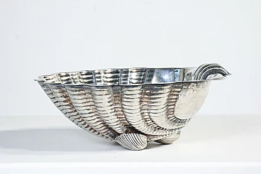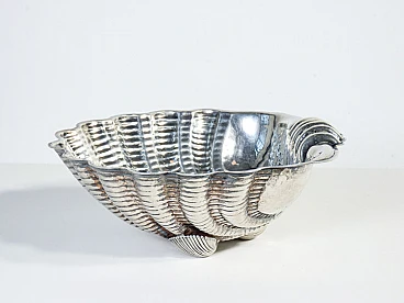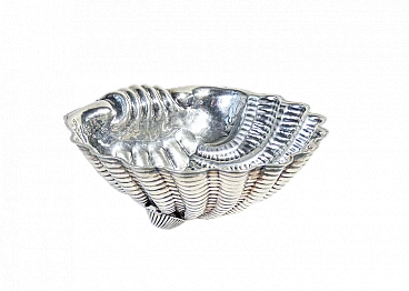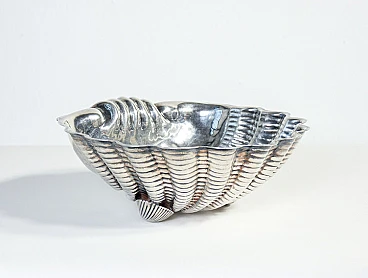 Ciotola a forma di conchiglia in argento 800 dell'argentiere Rino Greggio (Padova), anni '50. Rino Greggio è il fondatore e artefice principale di Greggio Argenti, un'azienda italiana di prestigio fondata nel 1948 a Padova. Specializzata nella produzione di posate, vasellame e oggetti d'argento di alta qualità, Greggio Argenti unisce la tradizione artigianale italiana con l'innovazione tecnologica per creare prodotti distintivi e di grande valore estetico. Grazie alla sua eccellenza artigianale, l'azienda ha ricevuto numerosi riconoscimenti internazionali e continua a essere apprezzata sia in Italia che all'estero.
