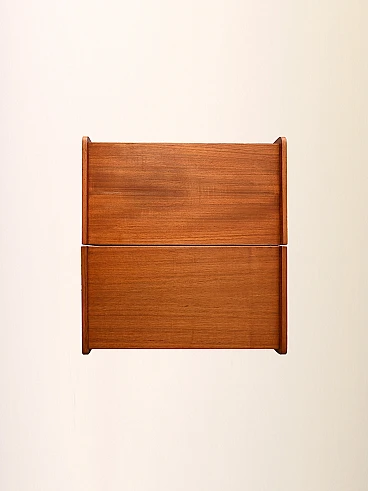 La combinazione di forme pulite, funzionalità innovativa e dettagli curati rende questi comodini in teak un'aggiunta affascinante e pratica a qualsiasi camera da letto o spazio abitativo, perfetti per coloro che apprezzano il design d'epoca con un tocco di modernità. Buone condizioni, è stato effettuato un restauro conservativo con prodotti di origine naturale. Potrebbe presentare dei segni del tempo. Per favore presta attenzione alle fotografie.