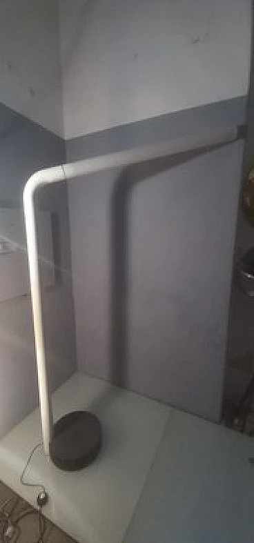 Lampada da terra al neon in ferro e vetro acrilico bianco, anni '60
