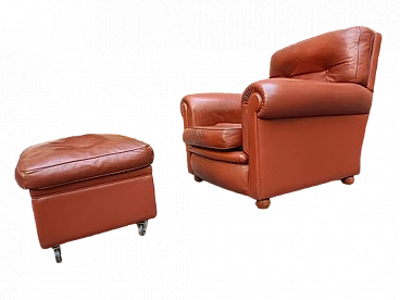 Poltrona in pelle con pouf di R. Frau per Poltrona Frau, anni '40