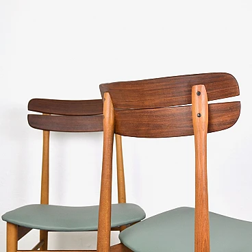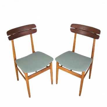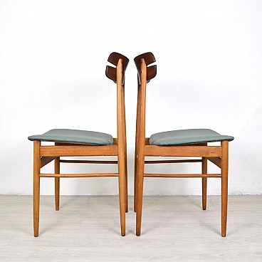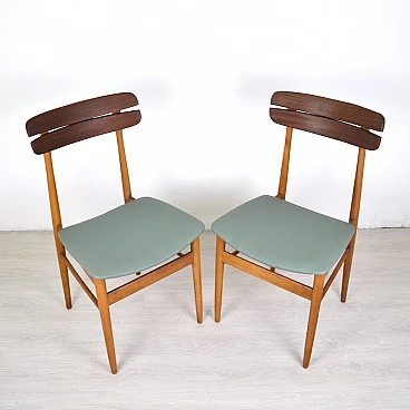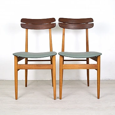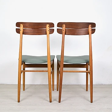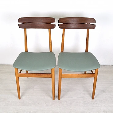 Coppia di sedie in faggio, teak ed ecopelle verde salvia, anni '60
