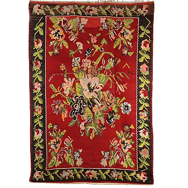 Tappeto Kilim caucasico in cotone con motivo floreale