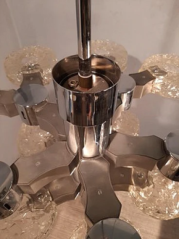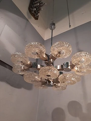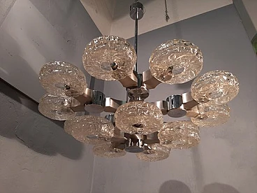 Lampadario a 15 luci in vetro di G. Sciolari per Sciolari, anni '70