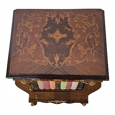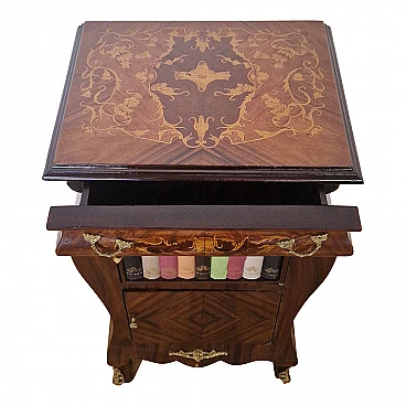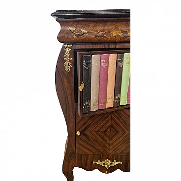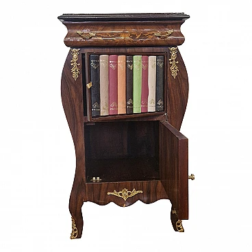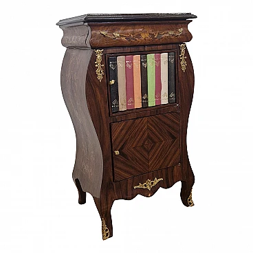 Comodino stile Luigi XV in legno con libri finti, inizio '900
