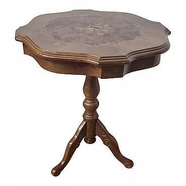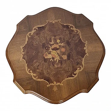 Tavolo in noce con piano intarsiato in stile francese, anni '80