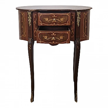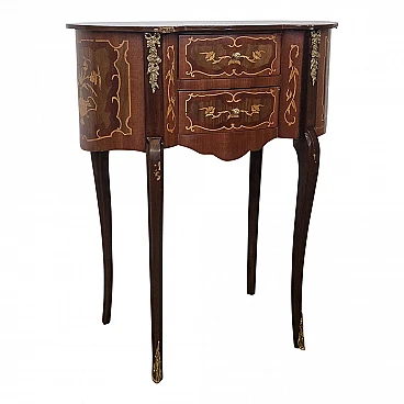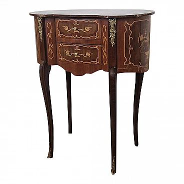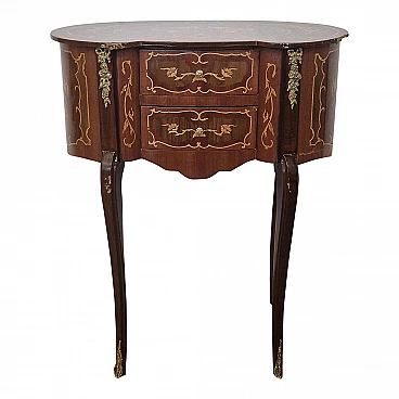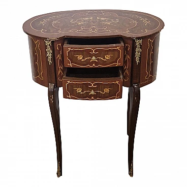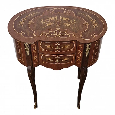Tavolo in noce con intarsi in stile Barocco, anni '80