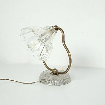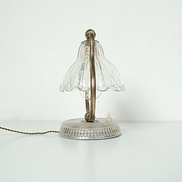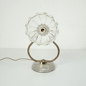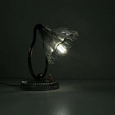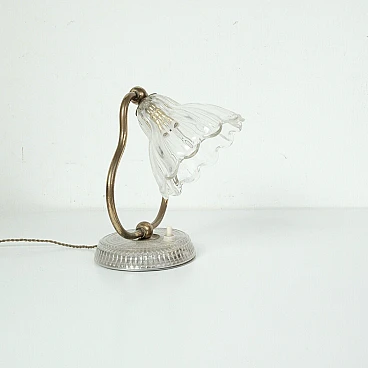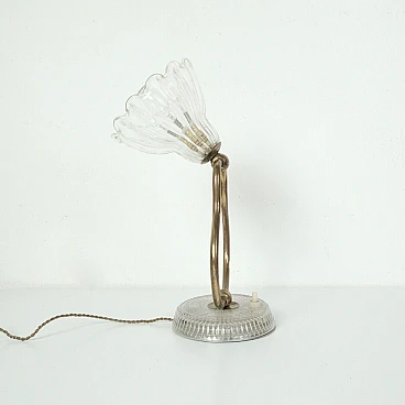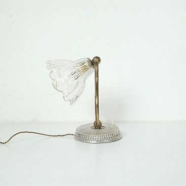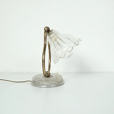 Lampada da tavolo con paralume a campanula in vetro, anni '50