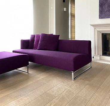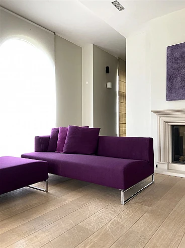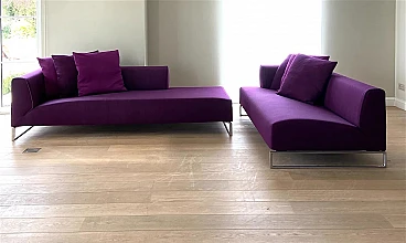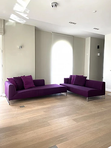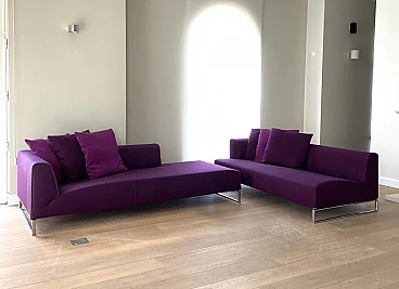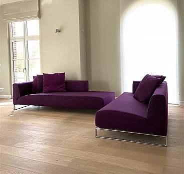 Elegante divano modello Solo '14 in tessuto-cotone Maxalto viola di arch. Antonio Citterio per B&B Italia. Bellissimo divano modulare B&B Italia Solo '14 in morbido tessuto in cotone materico Maxalto viola. Tessuto dalla elevata raffinatezza tattile. Composto da due elementi di seduta. In ottime condizioni. Pochi mesi di vita come da esposizione. L’equilibrio del divano Solo nasce dalla volontà di Antonio Citterio di riduzione di qualsiasi elemento superfluo e dalla costruzione proporzionata delle sue componenti pure: il supporto di alluminio pressofuso, la seduta continua senza cuscinatura, lo schienale bracciolo sul quale si appoggiano i cuscini volanti. Il dettaglio sartoriale che lo caratterizza nasce dal profilo elegante delle imbottiture che evidenzia l’andamento delle linee del bracciolo e della porzione di seduta generosa. Anno di progettazione: 2014, aquistato a 16500 euro. Struttura: tubolari e profilati d'acciaio. Rivestimento: tessuto. Imbottitura: schiuma di poliuretano flessibile a freddo Bayfit®, fodera in fibra di poliestere. Piedi in profilato pressofuso di alluminio cromato. Larghezza 228 cm, profondità 96 cm, altezza 65 cm, altezza della seduta 40 cm.