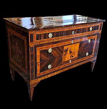 Cassettone Luigi XVI lastronato in palissandro e bois de rose, '700