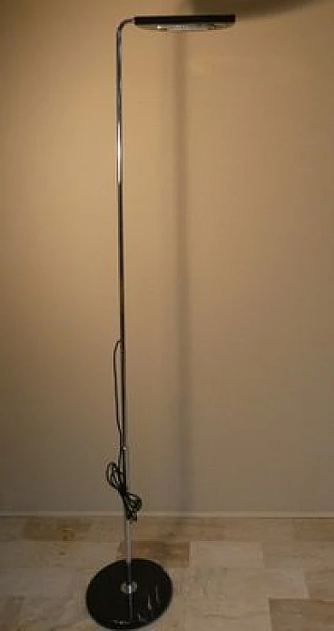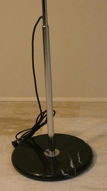 Un design minimal che sprigiona eleganza e raffinatezza... è la lampada da terra modello Mezzaluna di Bruno Gecchelin per Skipper. La struttura tubolare è in acciaio cromato, la base in marmo nero Marquinia ed illuminazione alogena con varialuce che permette di regolare l'intensità e ridurre i consumi. Lo stelo telescopico permette di regolare con semplicità l'altezza della lampada, da un minimo di 177 cm in altezza, ad un massimo di 213 cm. Diametro della base in marmo 32 cm. Dimensioni: H. massima 198 cm - diametro base 32 cm - paralume L. 36 cm - P. 22 cm.