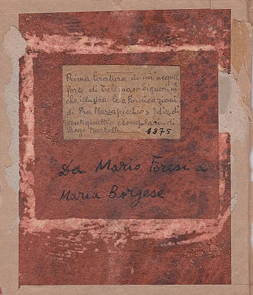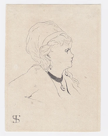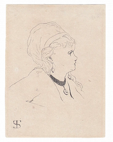 Acquaforte di Telemaco Signorini (Firenze, 1835 – Firenze, 1901) raffigurante una donna di profilo, 1875. Pittore, incisore, poeta e scrittore, fin da giovanissimo affiancò il padre Giovanni Signorini modesto ma stimato pittore al servizio del Granduca di Toscana Leopoldo II. All'età di 17 anni, nel 1852, si inscrisse all'Accademia di Belle Arti di Firenze. La vita accademica e il clima rigido dei maestri contrastavano però col suo animo ribelle, cospiratore mazziniano e volontario nella II Guerra di Indipendenza, nel 1856 decise di lasciare l'Accademia per dedicarsi alla pittura "en plain-air" con i colleghi Odoardo Borrani (Pisa, 1833 – Firenze, 1905) e Vincenzo Cabianca (Verona, 1827 – Roma, 1902). Frequenta il Caffè Michelangiolo e viaggia a Venezia, in Emilia Romagna, in Lombardia fino in Scozia. Con Cabianca a La Spezia e i paesaggi liguri segnano una svolta nella sua pittura che si arricchisce di contrasti chiaroscurali e di un uso consapevole della macchia come elemento principale del linguaggio figurativo. Nel 1861 a Parigi stringe amicizia con gli artisti della Scuola di Barbizon. Tornato in Italia, nel 1862 si lega a Diego Martelli (Firenze, 1839 – Firenze, 1896), importante critico d'arte con il quale fonda il Gazzettino delle arti del disegno (1867) e il Giornale artistico (1873) e per il quale illustra Primi Passi e Fornicazioni di Fra Mazzapicchio. È considerato uno dei principali esponenti del gruppo dei Macchiaioli. A partite del 1871 si avvicina alla tecnica dell'incisione illustrando libri di scienze, poi quelli dell'amico Martelli, incide acqueforti isolate (Primavera e Novembre, pubblicate su L'Arte in Italia) e l'importante serie di 11 soggetti dedicati al Mercato Vecchio di Firenze. Questa acquaforte è una delle tre illustrazioni che Signorini realizza per l’opera in cento esemplari di Diego Martelli, Fornicazioni di Fra Mazzapicchio, Pisa, Tipografia Nistri, 1875. Le altre due tavole raffigurano: Nudo di donna sdraiata e una Bambina. Il volume è da considerarsi raro. Luisa Arrigoni nell'articolo apparso su I quaderni del conoscitore di stampe afferma: "Assai più felici, e si potrebbe quasi parlar di capolavori, sono le illustrazioni per le "Fornicazioni", perfettamente intonate alla prosa spregiudicata del Martelli… il "ritratto muliebre" opera unica nella grafica italiana dell'Ottocento. Con mezzi limitatissimi: pochi graffi leggeri e conclusivi sulla lastra di rame, Signorini riesce ad evocare figure luminose e corpose insieme". Al verso del supporto del presente esemplare, un'etichetta manoscritta dice trattarsi di una prima tiratura di 24 esemplari. Con poche linee, graffi delicati Signorini realizza il profilo di una donna. Si sofferma nella descrizione di una collana ottenuta da fitte linee parallele dalla quale un ciondolo scende su una profonda scollatura. Il profilo acquista una suo plasticità nel foglio. In basso a sinistra monogramma dell'artista. Impressione eccellente, fresca e ben contrastata su carta avorio compatta. Ottimo stato di conservazione, minimi margini oltre la battuta. Bibliografia: Quaderni del conoscitore di stampe, n. 2, ottobre-novembre 1970, p. 51.