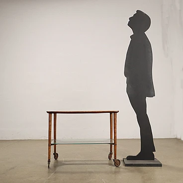 Carrello a doppio ripiano in legno di faggio e vetro fumé, anni '50