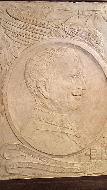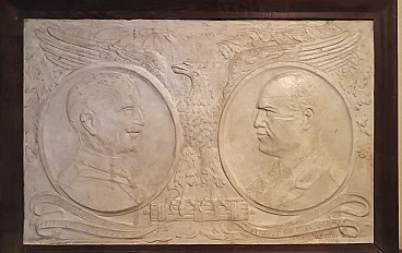 Bassorilievo in gesso di Vittorio Emanuele III e Mussolini, anni '20