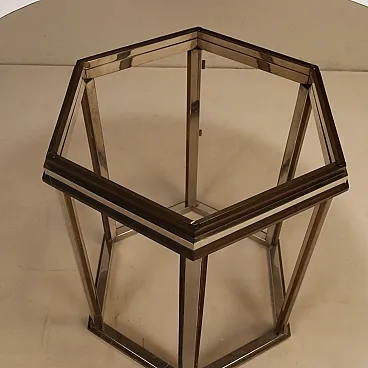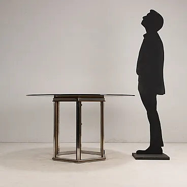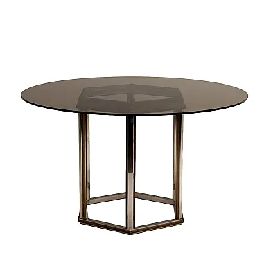 Tavolo in ottone cromato con piano in vetro fumè, anni '70
