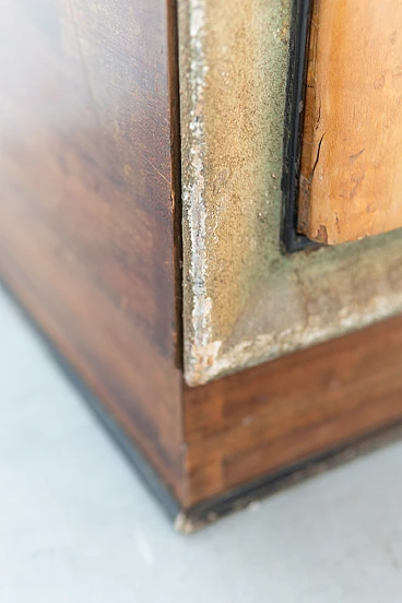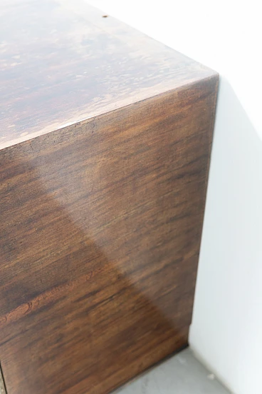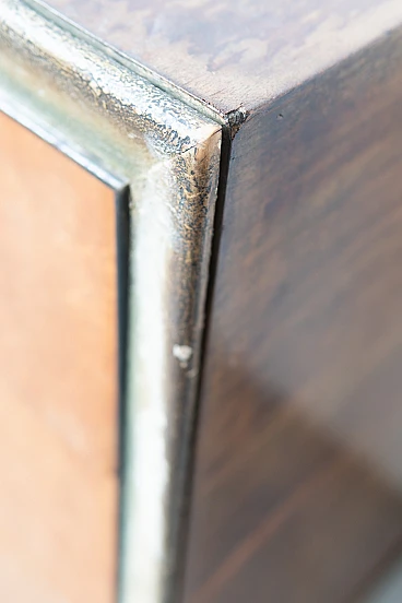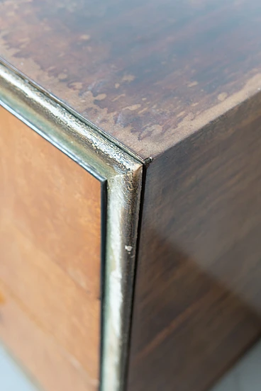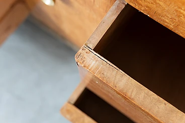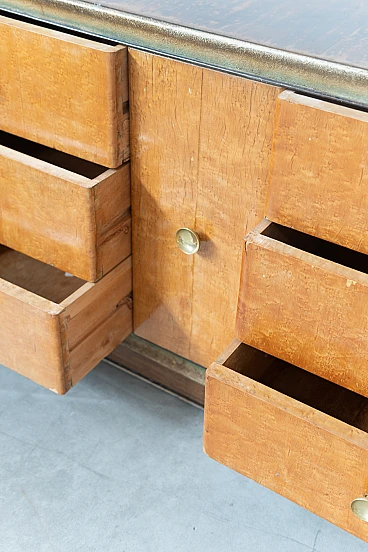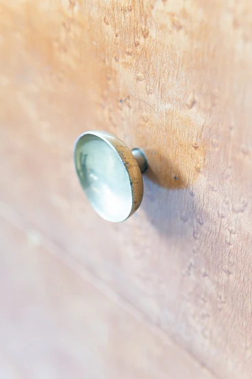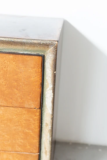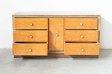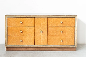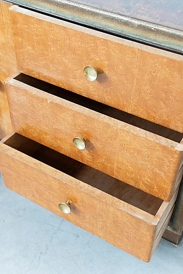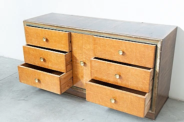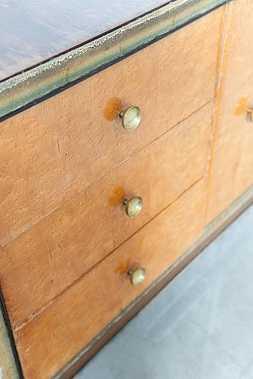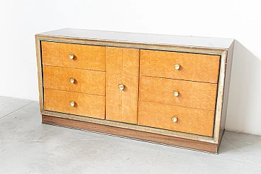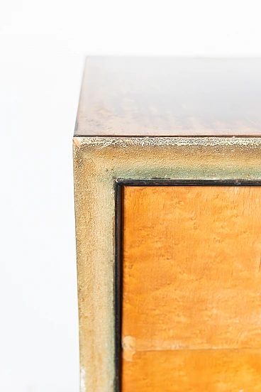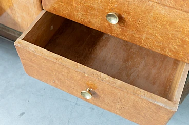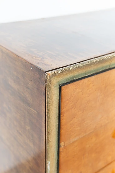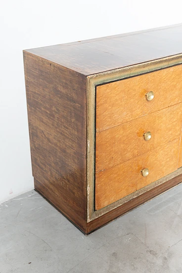 Comò in radica di betulla con maniglie in ottone, anni '50