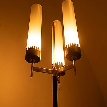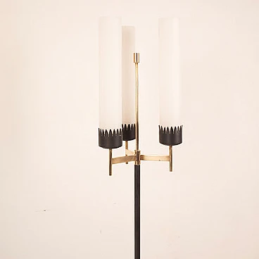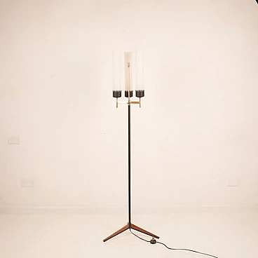 Lampada da terra in legno, metallo e vetro di Stilnovo, anni '50