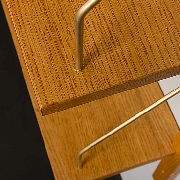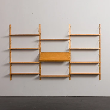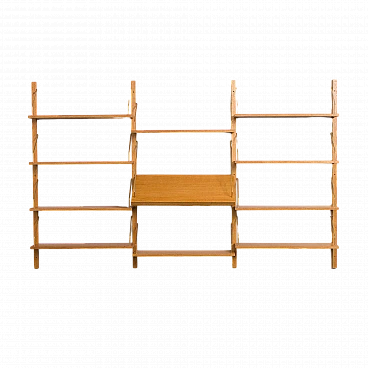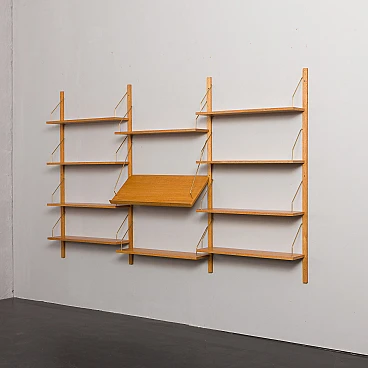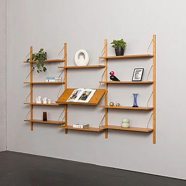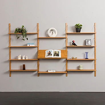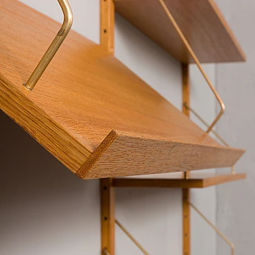 Libreria scandinava in rovere nello stile di Poul Cadovius. Una notevole composizione di mensole sospese su montanti in legno massello con ganci in ottone. Questa libreria è stata creata utilizzando elementi vecchi e nuovi, mantenendo lo stile del design anni '60. È dotata di un sistema di mensole interamente modulare, perfetto per esporre libri, dischi in vinile e decorazioni secondo necessità/esigenze. Il ripiano espositivo aggiuntivo è perfetto per mostrare foto, riviste o dipinti. Il mobile è progettato nello stile dei progetti di Poul Cadovius e Preben Sørensen degli anni '60, caratterizzati da un sistema di montaggio simile. Le dieci mensole sono profonde 20 cm. Il ripiano espositivo è profondo 33 cm. I quattro montanti in legno massello sono lunghi 150 cm. La libreria è molto facile da montare e i ripiani possono essere posizionati più in alto o più in basso a seconda delle proprie esigenze. Il legno è stato trattato con olio protettivo per esaltarne le venature. Tutti i ripiani hanno una nuova impiallacciatura e sono stati tinti e rifiniti per ottenere un aspetto uniforme. Il mobile è in condizioni fantastiche e l'effetto finale è incredibile. È possibile realizzare una libreria quasi identica: la venatura del legno potrebbe differire leggermente da quella nelle foto, ma le dimensioni, la qualità, il colore e la finitura saranno gli stessi (per maggiori informazioni contattare il venditore).