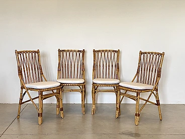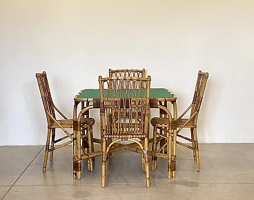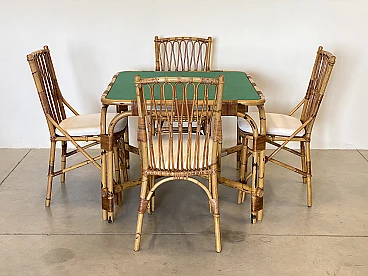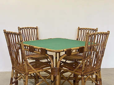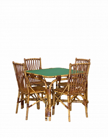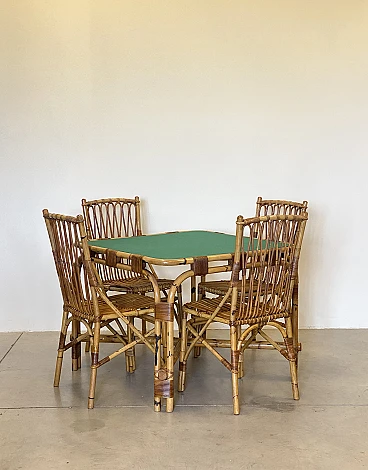 4 Sedie e tavolo da gioco in bambù di G. De Vivo, anni '70