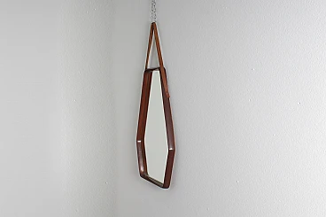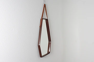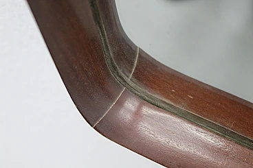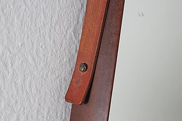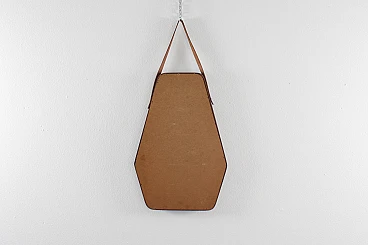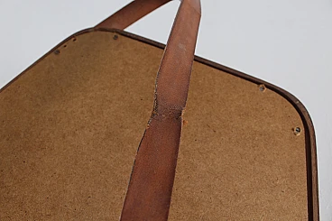 Specchio geometrico con cornice in legno e pelle, anni '60