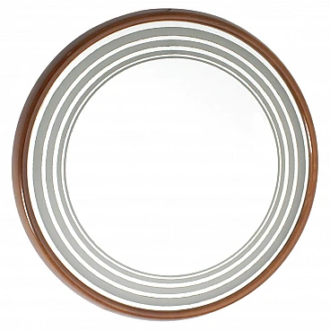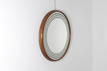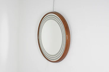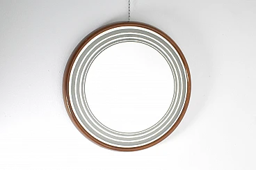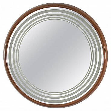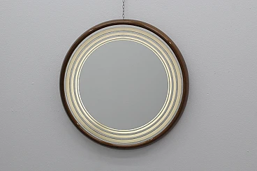 Specchio retroilluminato rotondo con cornice in legno, anni '60