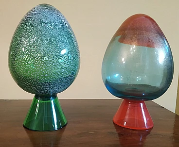Coppia di uova in vetro di Murano di Carlo Moretti, 1992