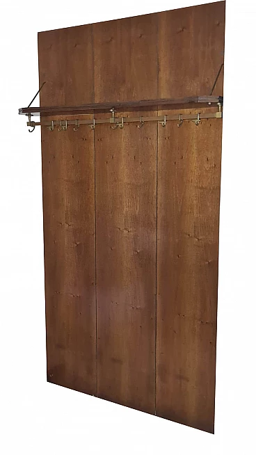 Mobile appendiabiti da muro in legno massiccio vintage, provvisto di 12 ganci in ottone, provvisto di mensola. Ottime condizioni