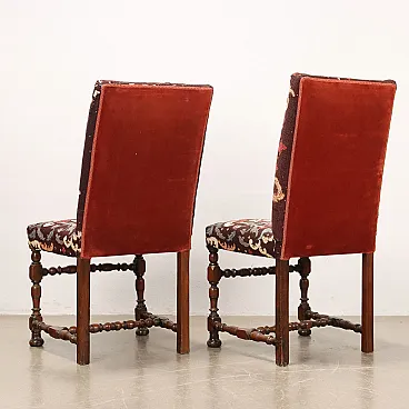Coppia di Sedie a rocchetto in noce con tessuto floreale, '700