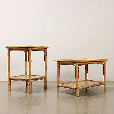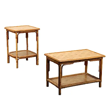 Coppia di Tavolini da salotto in bambù e giunco, anni '80