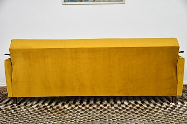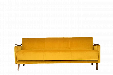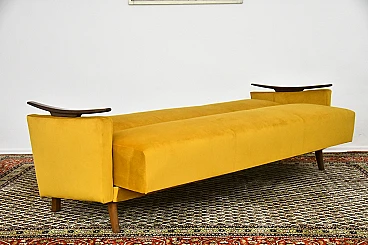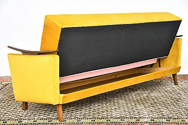 Divano letto in stile scandinavo in faggio e velluto giallo, anni '60