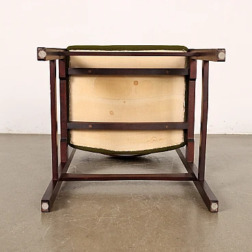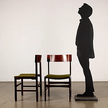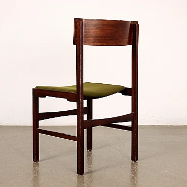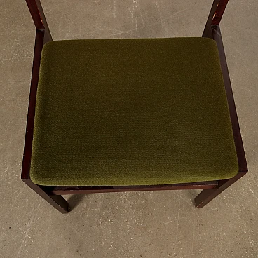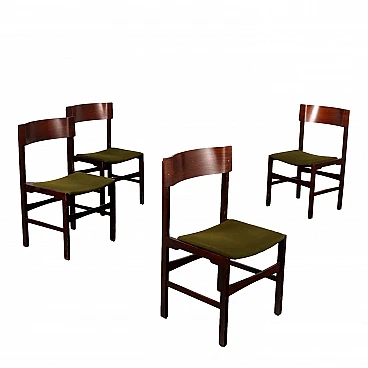 4 Sedie in faggio tinto e seduta imbottita con tessuto verde, anni '60